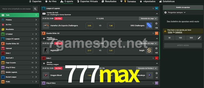 A aposta 777max oferece aos jogadores a experiência mais conveniente de apostas em eSports!